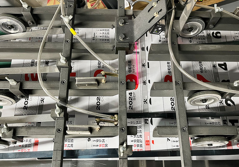 刷本にバーコードを印刷することにより、丁合の際、月順の間違いを検知、間違いがあれば機械が自動で止まります。間違った混入や取り違いを、製本前に防ぐことができます。